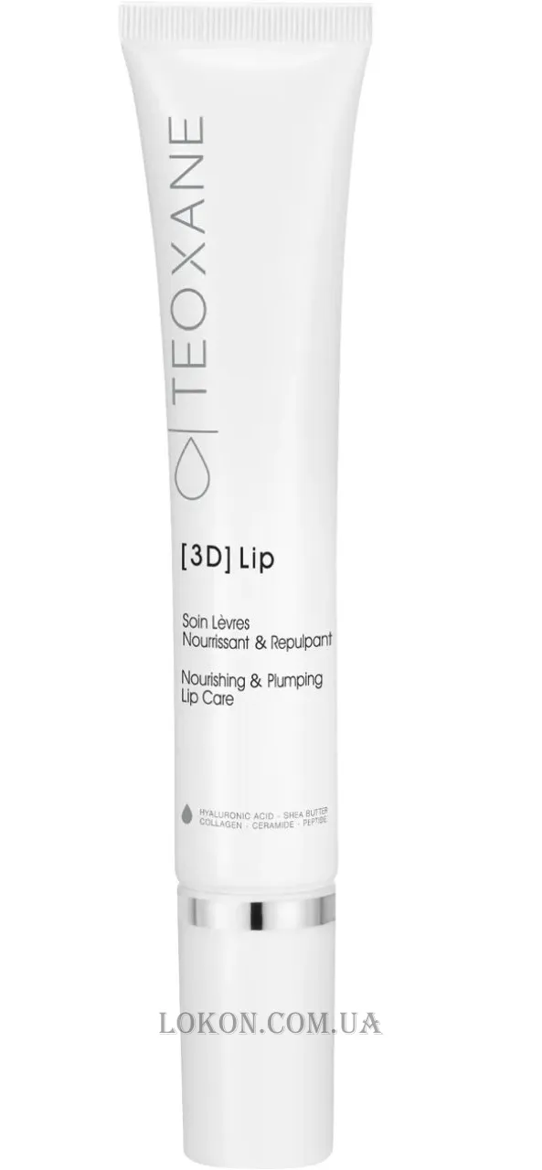 Спеціальний засіб для губ Teoxane 3D Lip заповнює об'єм після професійних косметологічних процедур. До складу бальзаму входять мікросфери гіалуронової кислоти і колагену (зволожують і надають об'єму), комплекс церамідів2 і матрикінів (додає гладкість і зменшує ознаки старіння), олія ши неомильна (чинить живильну дію).