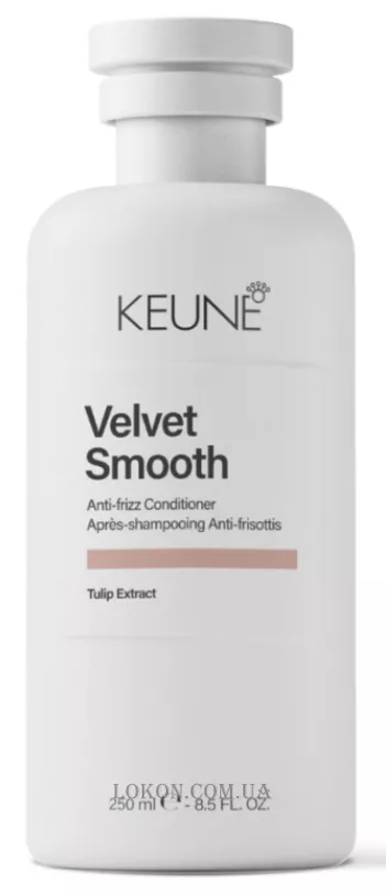 Keune Care Velvet Smooth Conditioner - кондиционер для волос, которые склонны к пушистости или непослушному состоянию. Продукт помогает восстановить гладкость, укротить фриз, придать блеск и сделать волосы более мягкими и управляемыми.