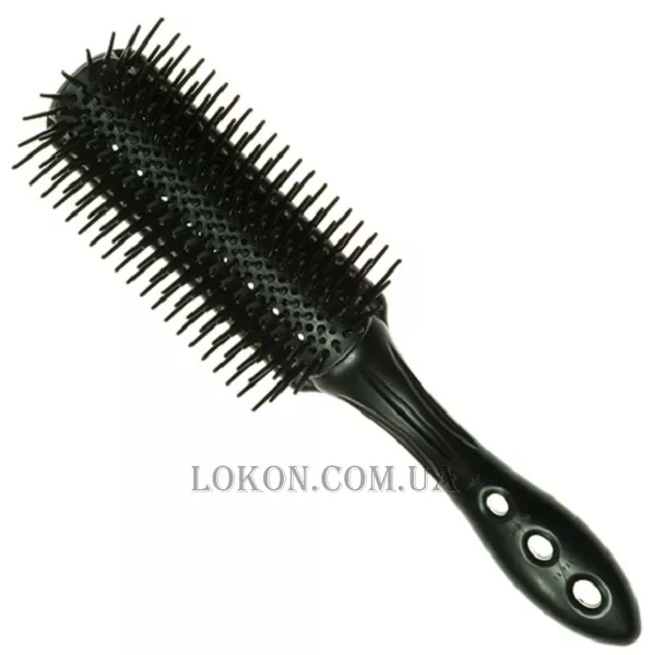 Щітка створена для швидкого укладання та підняття волосся від коріння. Пропускає повітря від фена через отвори в ручці та між щетинками. Завдяки їм корпус не нагрівається.