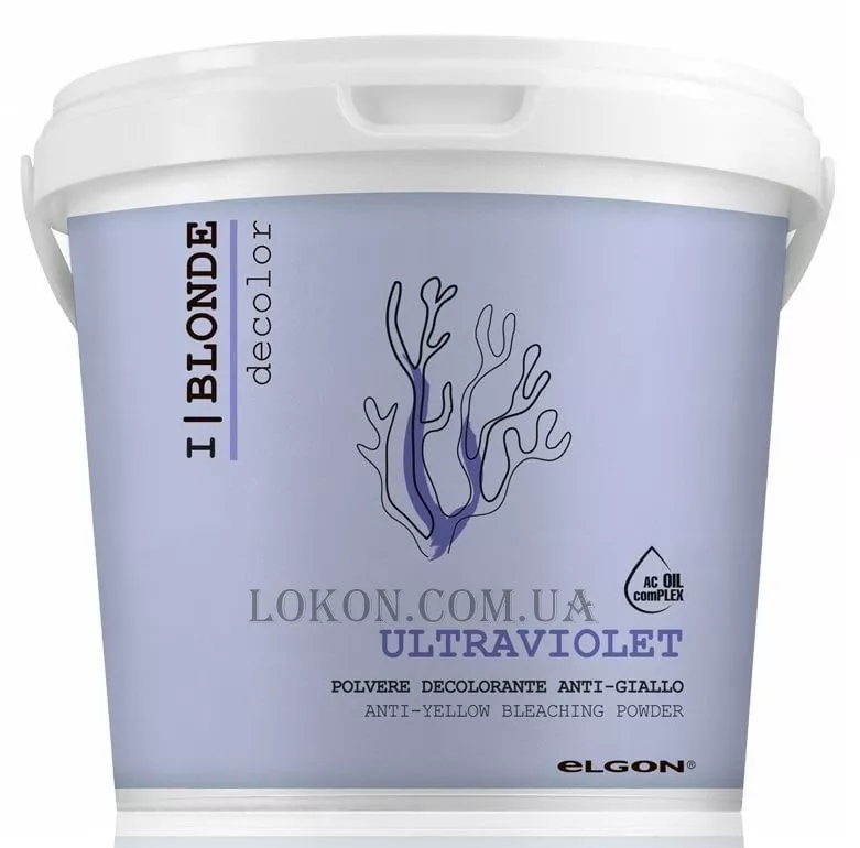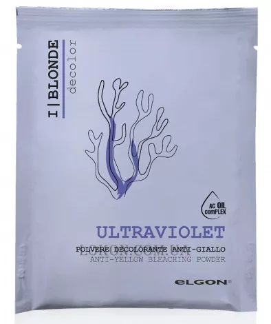 Elgon Ultraviolet Bleach використовує високоефективну формулу без пилу, яка забезпечує до 7 рівнів освітлення. Цей фіолетовий відбілювач із червоними водоростями, що підходить для всіх видів освітлення, нейтралізує основні жовті тони, забезпечуючи ідеальний блонд, захищаючи при цьому волокна волосся.