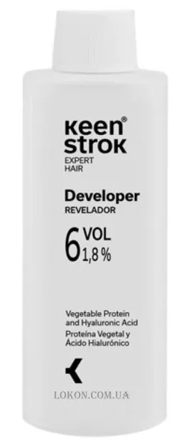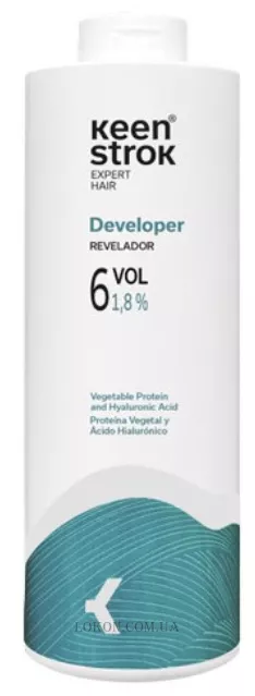 Keen Strok Bain Oxigen Conditioner 6 Vol 1,8% — окислювальний крем-кондиціонер для створення фарбувальних сумішей. Він чудово працює як окислювач меланіну, зменшуючи концентрацію кольорового барвника. Створює полімери, які замінюють меланін і надають колір фарбованому волоссю. Містить доглядові компоненти, які захищають волосся від пошкодження і робить його м'яким. Виконує відразу кілька завдань: насиченість кольору, забарвлення сивини, регулює рівень освітлення та тривалість інтенсивності кольору.