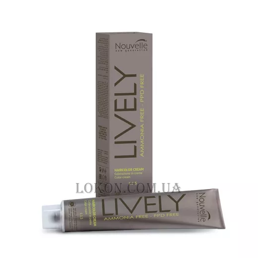Nouvelle Lively Hair Color це професійна, перманентна, гіпоалергенна, безаміачна крем-фарба для волосся, в основі якої лежить комплекс захисних та кондиціональних компонентів, у поєднанні з пігментами високого ступеня очищення. Фарбує волосся будь-якого типу, у тому числі сиві, в яскраві насичені кольори, надаючи при цьому надзвичайно дбайливий вплив на структуру волосся і шкіру голови.