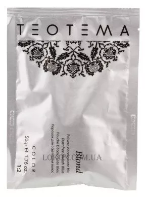 Teotema Blond - це високоефективна система освітлення, що дозволяє працювати в будь-якій техніці. Доглядають компоненти формули - гідролізовані протеїни пшениці - захищають волосся під час освітлення. Teotema Blond - це компактна пудра, яка легко і швидко поєднується з окислювачем, перетворюючись на м'який крем. Особливий пігмент, що входить до складу порошку, запобігає появі небажаної жовтизни.