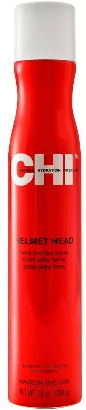 CHI Helmet Head Extra Firm Hair Spray можна поєднувати з укладанням феном. Його інноваційна технологія дозволяє фіксувати навіть жорстке, що важко піддається укладання, волосся азіатського типу. Швидкосохнучий лак екстра сильної фіксації призначений для тривалої дії.
