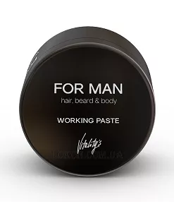 Паста Vitality's For Man Working Paste, що матує, ущільнює текстуру волосся завдяки вмісту карнаубського воску. Легка фіксація дає можливість кілька разів змінювати форму зачіски. Паста, що моделює, створює матовий ефект і підходить для всіх типів волосся. Рекомендується для створення креативних укладок.