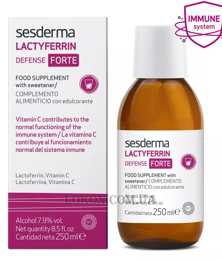 Харчова добавка з концентрацією ліпосомірованного лактоферину в 4 рази вище, ніж у звичайному lactyferrin Defense, що дозволяє нормалізувати функціонування імунної системи і збалансувати всі функції організму в найкоротші терміни. Також він містить інкапсульований вітамін С, який допомагає відновити і посилити захисні функції організму, має антиоксидантну функцію, сприяє утворенню колагену, покращує засвоєння заліза організмом.