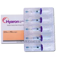 Препарат Hyaron має виражену омолоджуючу та відновлюючу дію. Проникаючи в клітини, він насичує їх корисними речовинами та затримує вологу, завдяки чому шкіра стає більш еластичною та зволоженою.