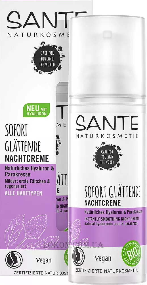 SANTE Instant Smooth Night Cream - Нічний ботокс-крем "Помітний ефект" з гіалуроновою кислотою та акмелою