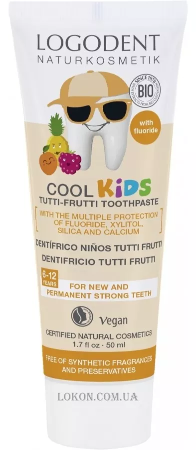 LOGONA Cool Kids Tutti Frutti Toothpaste - Дитяча зубна біопаста "Тутті-Фрутті"