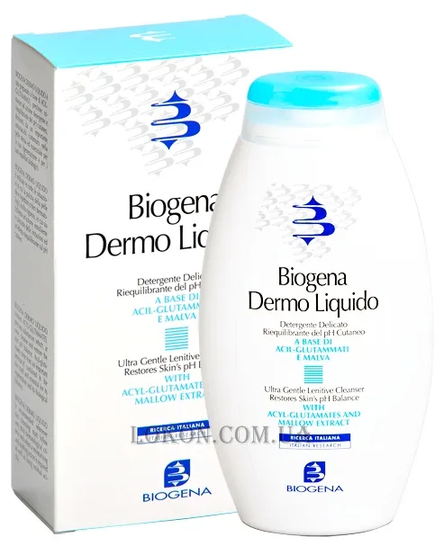 Biogena Dermo Liquido - ідеальний ультрам'який засіб для відновлення кислотного балансу чутливої ​​шкіри. Делікатно очищає, не порушує природні механізми захисту шкіри та забезпечує її нормалізацію за рахунок відновлення рівня кислотності чутливої, сухої чи хворої шкіри.
