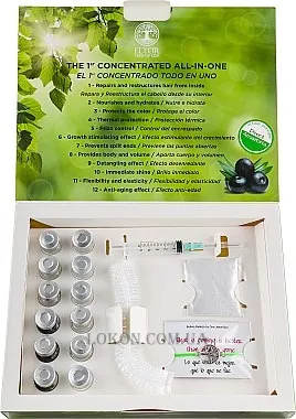 Класифікація: Професійна Країна виробник: Іспанія Тип волосся: Фарбоване волосся, Пошкоджене волосся Активні компоненти: Кератин, Арганова олія, Колаген Призначення: Блиск, Зволоження, Живлення, Відновлення структури, Захист кольору Група товару: Ампули, концентрати