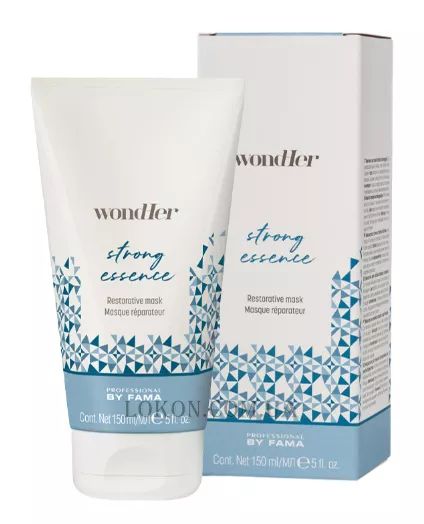 By Fama WondHer Strong Essence Restorative Mask спеціально розроблений для обробленого та пошкодженого волосся. Екстракт соняшника та кераойл живлять та зміцнюють волосяне волокно. Має ефект, що запечатує, протидіє січеним кінчикам і зміцнює структуру волосся. Він забезпечує міцне волосся всередині, пофарбоване та блискуче зовні.