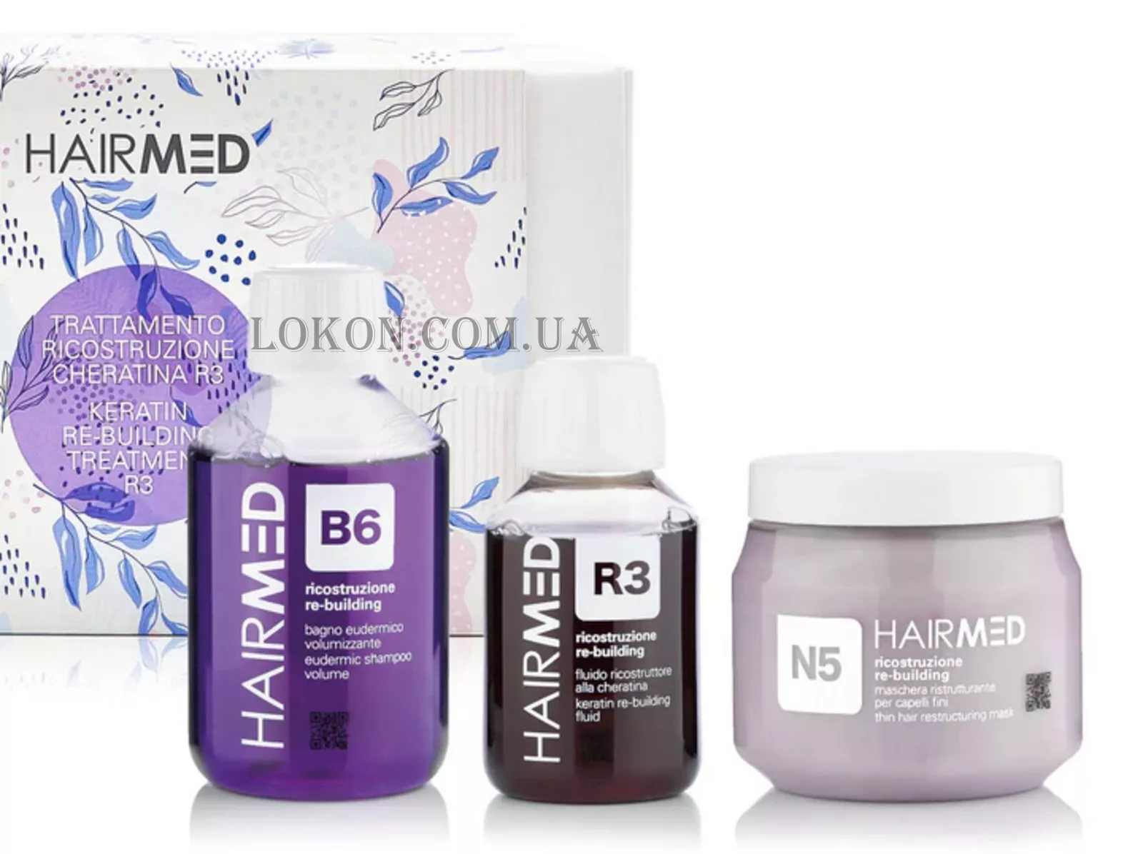 HAIRMED Kit Trattamento Ricostruzione Family Size - Набір для реконструкціі (шампунь B6 + маска N5 + флюїд R3)
