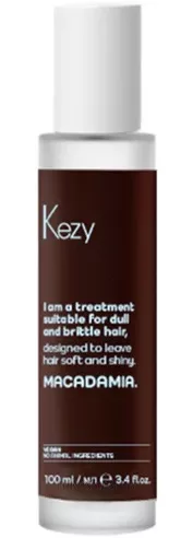 Олія I am Macadamia (Kezy). Живильне масло, що розгладжує, для абсолютної краси волосся надає сяючий блиск, миттєво дисциплінує неслухняне волосся і закриває кутикулу. Попереджає перетин волосся, захищає від зовнішніх агресивних факторів та відновлює структуру волосся. Не потребує змивання.