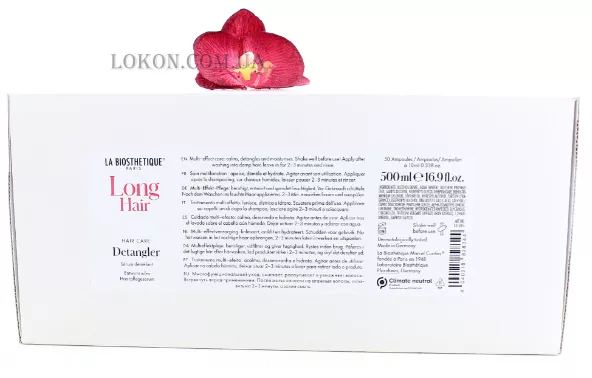 Сироватка-догляд La Biosthetique Long Hair Detangler – це засіб для інтенсивного відновлення та захисту довгого та ослабленого волосся. Надає гладкість довгому волоссю, активно доглядає за пасмами, зміцнюючи і захищаючи від пошкоджень. Формула легкого засобу містить протеїни шовку і масло Інка-інчі. Живлячи кутикулу, ці речовини природним чином повертають локонам гладкість і блиск, попереджають ламкість.