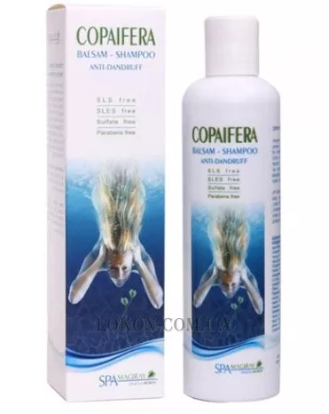 Бальзам-шампунь "КОПАЙФЕРА" із кондиціонером. Препарат є унікальною виключно м'якою формулою. Насичений фруктово-ягідними екстрактами.