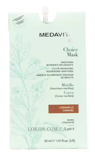 Choice Mask Clear MEDAVITA відновлює відтінок пошкодженого волосся, надає життєвої сили та енергії. Вони стають міцнішими, яскравішими.