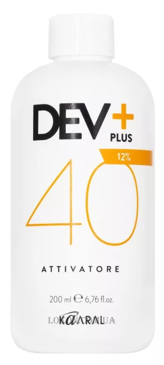Dev Plus 40 vol (12%) – осветление на 5 уровней, рекомендуется для супер светлых оттенков и волос, которые трудно поддаются окрашиванию.