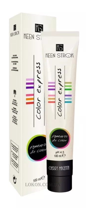 Keen Strok Color Express Pigmento – полуперманентный краситель от испанского бренда. Линейка представлена сочными и яркими оттенками. Для любителей экспериментов именно то, что нужно. Не содержит аммиака. Цвет сохраняется насыщенным и ярким до 10 раз мытья головы. Позволяет смешивать оттенки и использовать одновременно несколько цветов. Чтобы получить очень яркий оттенок, можно наносить краску на предварительно осветленные волосы. После использования рекомендуется мыть голову безсульфатным шампунем для медленного вымывания пигмента.