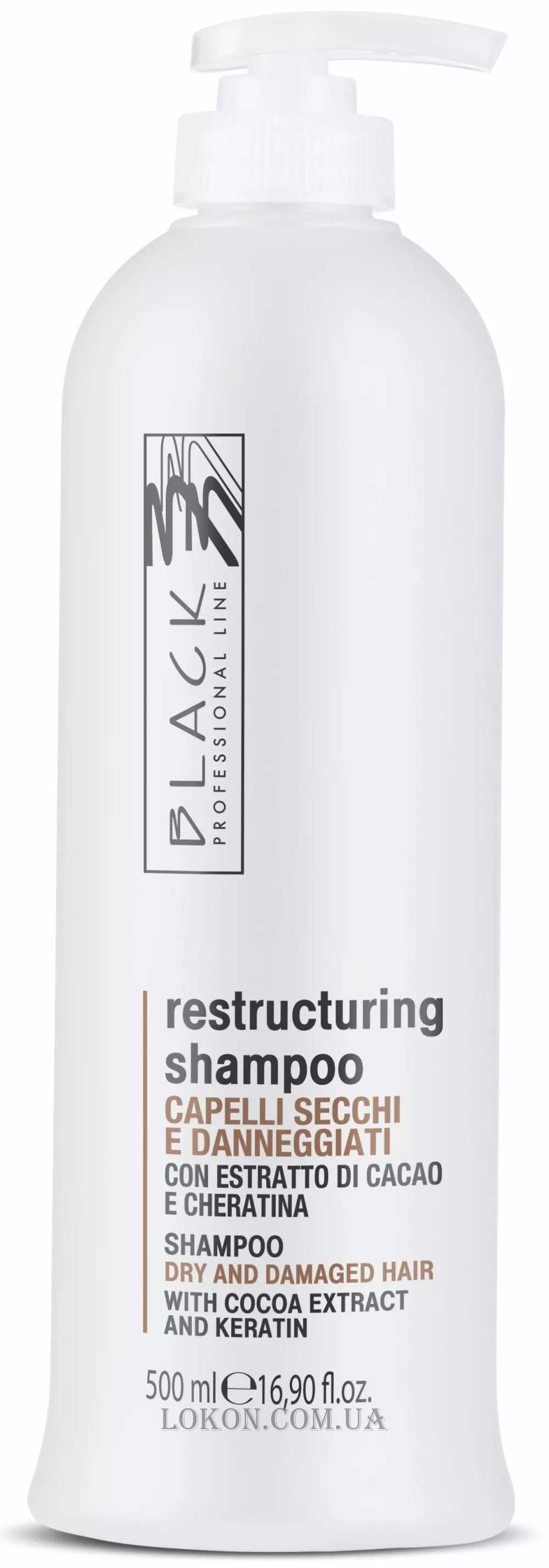 BLACK Restructuring Shampoo - Реструктурирующий шампунь с кератином и шоколадом