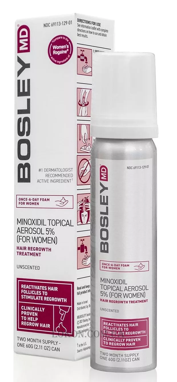 BOSLEY Women's Regular Strength Minoxidil 2% Topical (Foam) - Пена с миноксидилом 2% для восстановления роста волос у женщин (курс 2 месяца)
