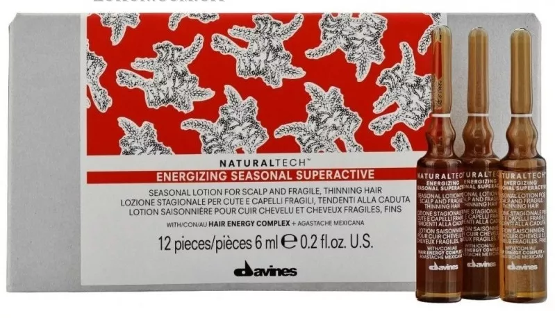 Энергетический сезонный суперактивный лосьон от бренда Davines способен помочь людям с ослабленной кожей головы и хрупкими, склонными к выпадению волосами. Содержимое ампул стимулирует процесс метаболизма, улучшая микроциркуляцию кожи головы.