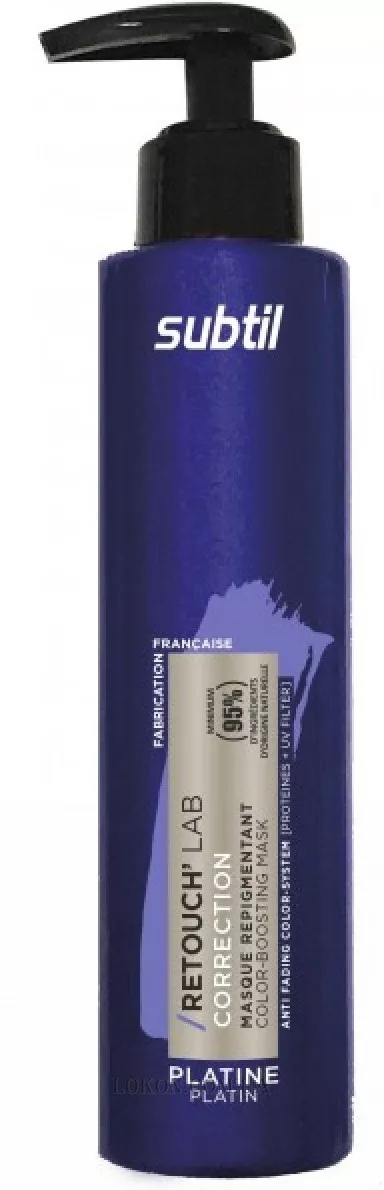 Маска не содержит аммиак, парабены и силиконы. Тонирующие маски Subtil RETOUCH можно смешивать между собой и сочетать их в самых разнообразных вариациях, создавая новые индивидуальные и эксклюзивные цветовые нюансы. Эффект стойкости и интенсивности маски сохраняется в зависимости от структуры и ухода за волосами до 8 мытий головы.