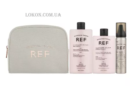 Набор, использование которого позволит существенно улучшить состояние окрашенных волос. После процедуры колоризации разрушается защитный барьер локонов, каким бы качественным ни был красящий состав. Добавьте к этому ежедневный стресс, воздействие окружающей среды, и волосы, однозначно, будут нуждаться в терапии. Она должна быть комплексной со всеми необходимыми этапами. Это очищение с помощью шампуня, нанесение кондиционера и средства для придания объема. Продукты от бренда REF, которые входят в набор, обеспечивают эффективное осуществление каждого шага ухода.