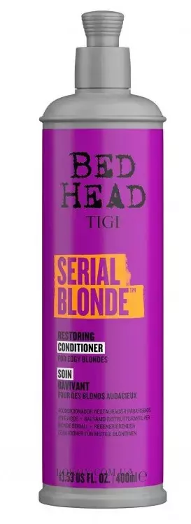 Восстанавливающий кондиционер для блондинок TIGI BED HEAD SERIAL BLONDE помогает вернуть светлым волосам их первоначальный блеск, восстановить повреждения. Укрепить светлые волосы и защитить их от пушения. Также увлажняет, смягчает и кондиционирует волосы. Восстанавливающий кондиционер разработан профессионалами для ухода за химически обработанными волосами и их восстановления. А также для усиления яркости цвета. Содержит диметикон для защиты и ухода за поврежденными волосами, чтобы они выглядели более здоровыми и сильными. Кондиционирующий комплекс для увлажнения, смягчения и ухода за светлыми волосами. Антистатик для защиты волос от пушения. Аминокислоты, которые являются строительными блоками белка для более сильных волос. Белковая смесь, которая укрепляет и структурирует белки волос.